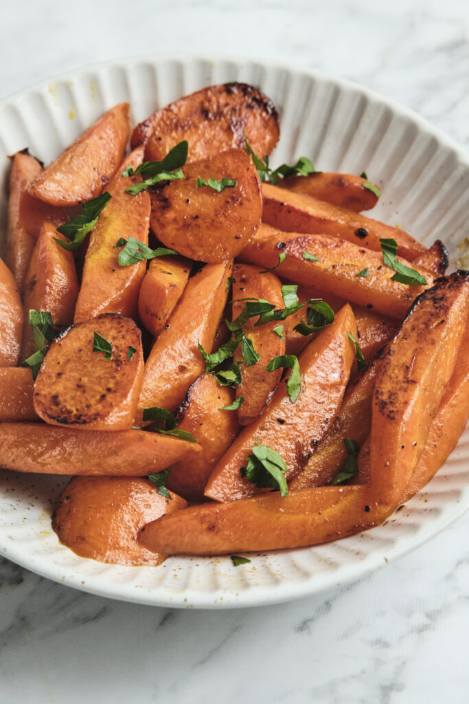 Remove from the oven, taste, and adjust seasoning if needed. Finish with fresh herbs if you like, and serve warm while the glaze is still shiny and coating the carrots (Photos 1- 4).