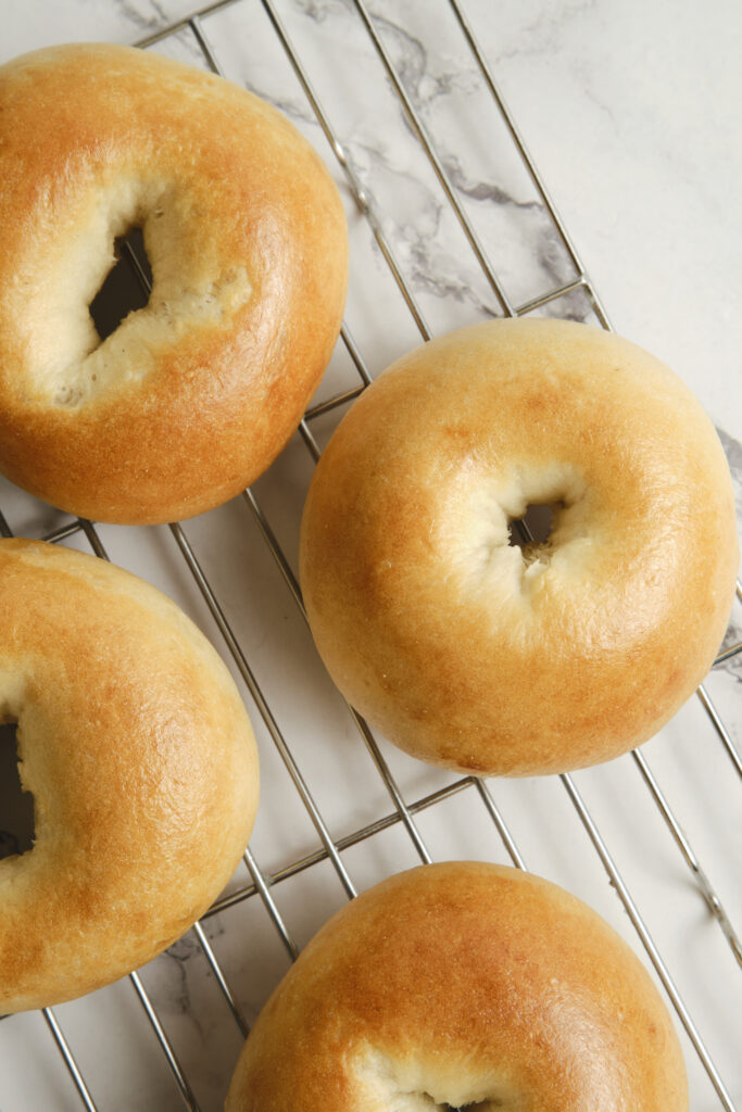 Don’t skip the boiling step: Boiling the bagels before baking is what creates the signature chewy crust. Even a short boil of 30–60 seconds per side makes a big difference.