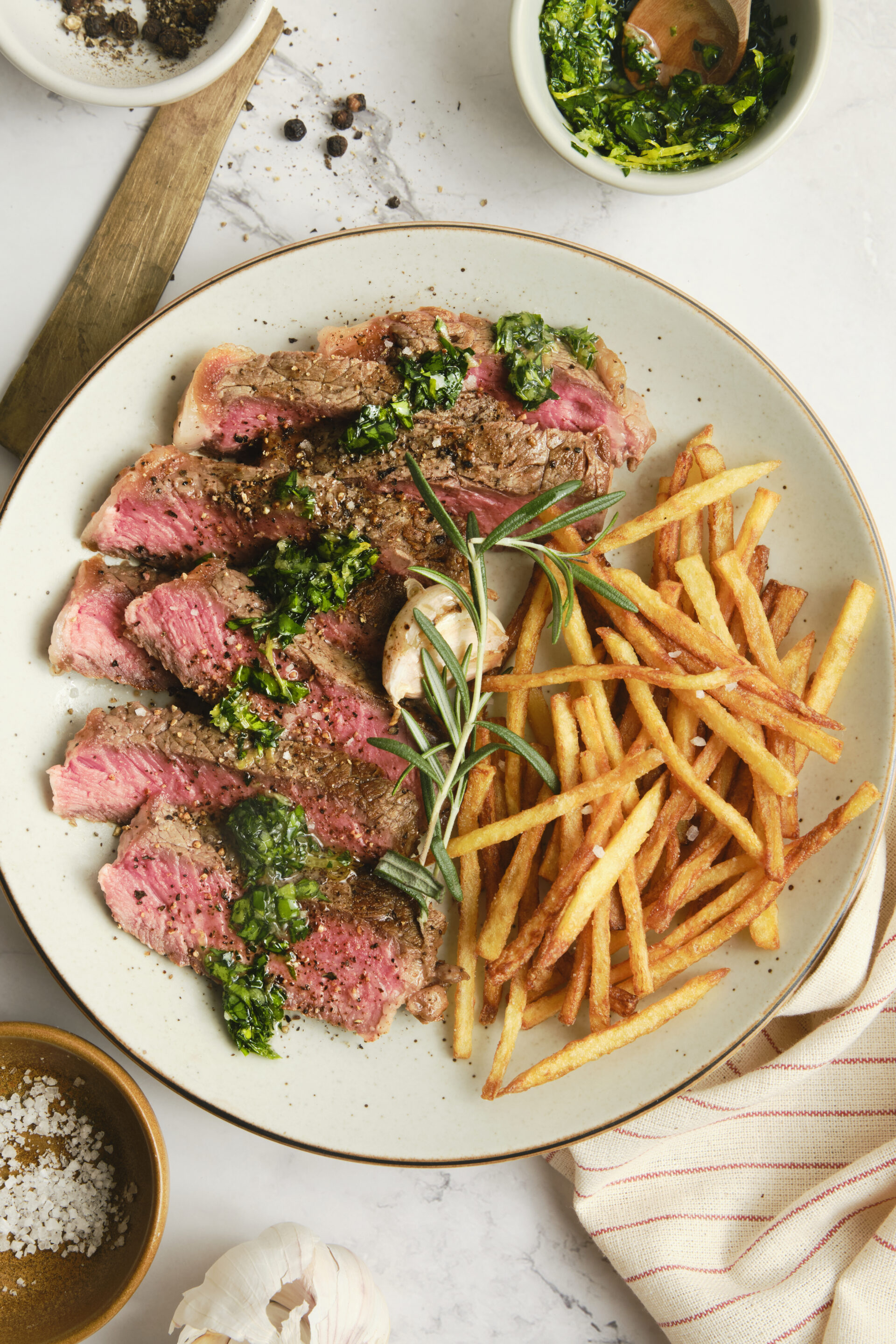 Enjoy your perfectly seared steak with crispy fries and bright gremolata—a classic, comforting meal that’s simple to make yet full of flavor.