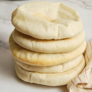 Place cooked pitas under a clean kitchen towel to keep them soft and prevent them from drying out.