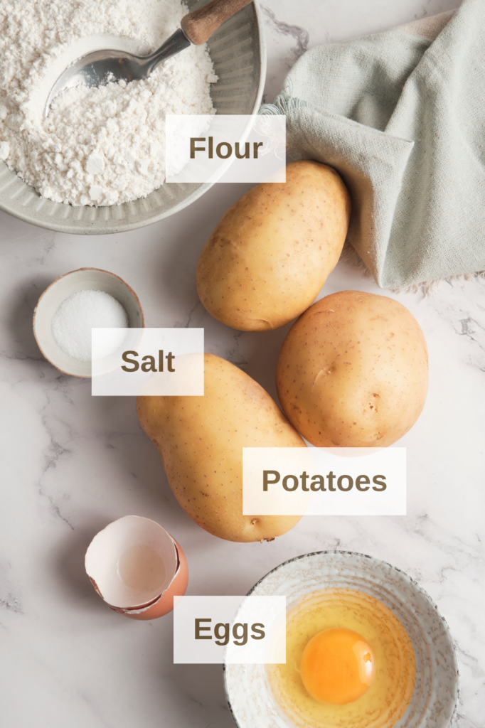 Potatoes are the main ingredient in gnocchi and give the dumplings their soft, fluffy texture. Starchy potatoes work best because they create a lighter dough.