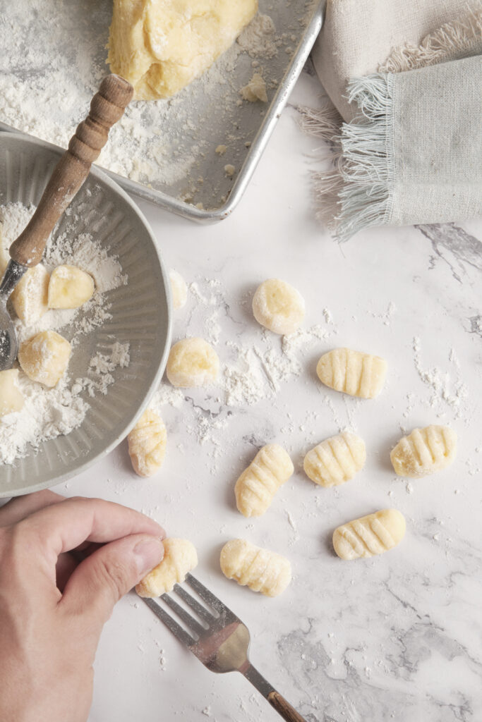 If you’d like to create the traditional ridges, roll each small piece gently over the back of a fork or a gnocchi board. These ridges help the sauce cling to the gnocchi, adding extra flavor to every bite.