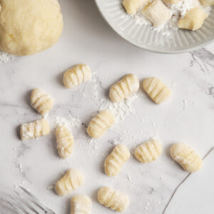 Flour helps bind the potatoes together and forms the dough. It gives the gnocchi structure while still keeping them tender.