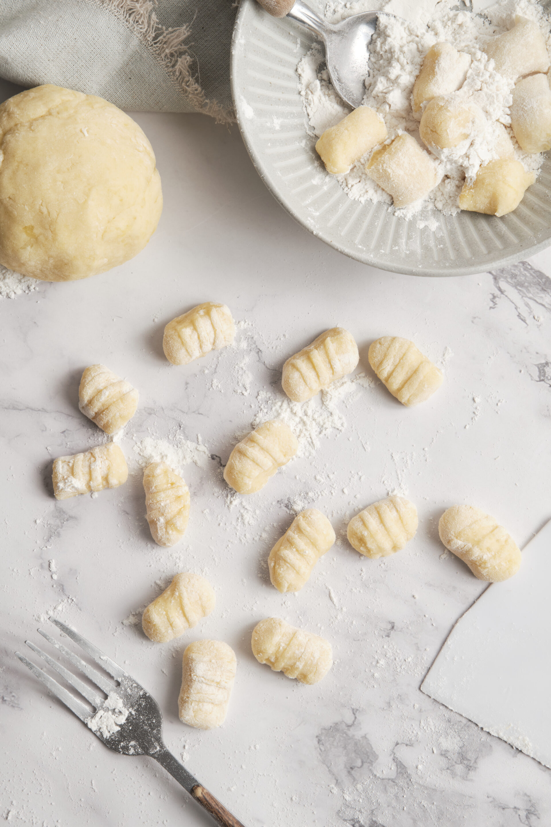 Flour helps bind the potatoes together and forms the dough. It gives the gnocchi structure while still keeping them tender.