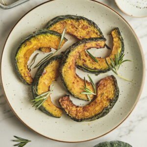A drizzle of olive oil helps coat the pumpkin pieces and ensures they roast evenly in the oven. It also helps the surface of the pumpkin turn lightly golden and slightly crisp. In addition to improving the texture, olive oil adds a subtle richness that complements the pumpkin’s natural sweetness.
