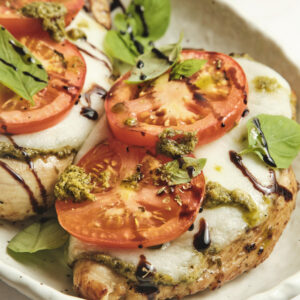Balsamic glaze – This is the finishing touch that ties everything together. It adds a gentle sweetness and a subtle tang that balances the richness of the cheese and chicken. A good balsamic glaze should be slightly thick and syrupy so it can lightly coat the dish without overpowering it. If you don’t have glaze, you can reduce balsamic vinegar on the stove until it becomes more concentrated and glossy.