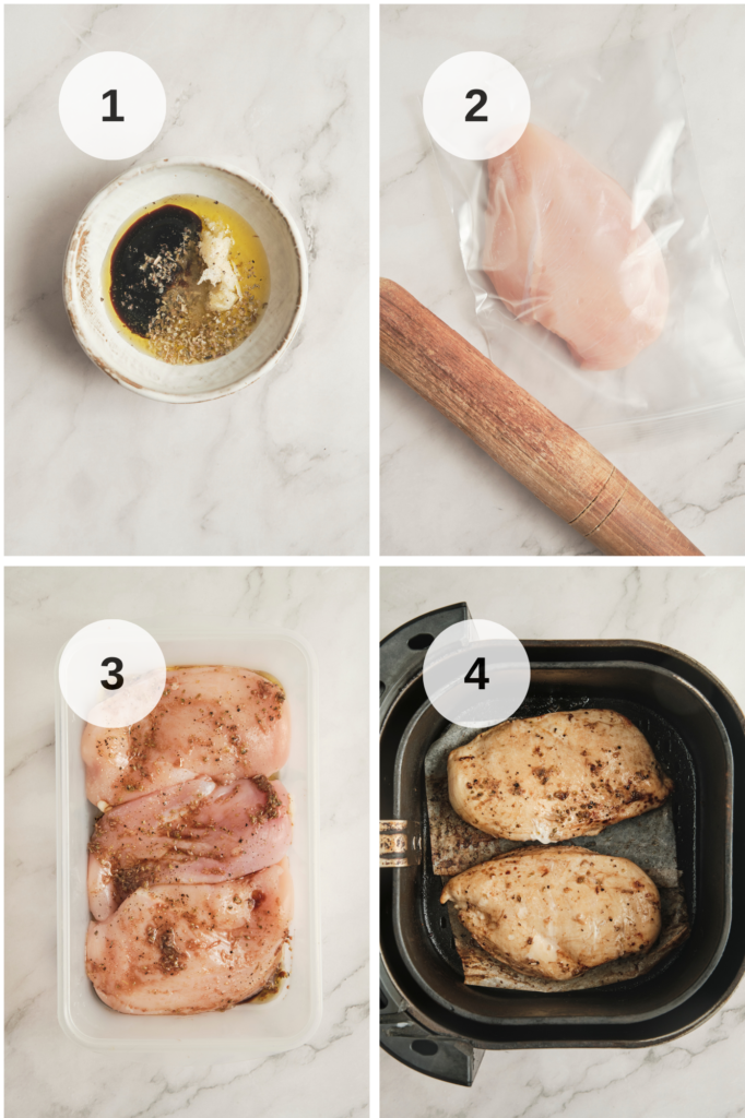 • While the chicken is marinating, preheat your air fryer to 375°F (190°C).