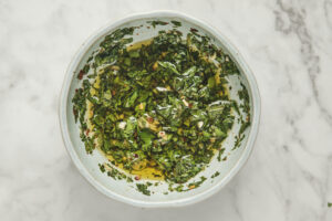 Fresh, vibrant, and full of flavor, this mint chimichurri is a simple herb sauce that adds brightness and balance to any dish. Made with mint, parsley, garlic, and olive oil, it’s quick to prepare and perfect for finishing grilled meats, vegetables, or even simple sides.