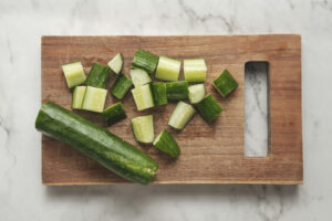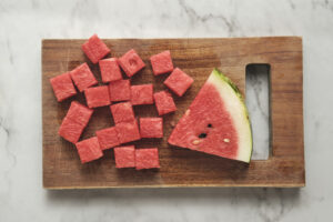Cut cucumber and watermelon into similar-sized cubes for better balance in every bite.